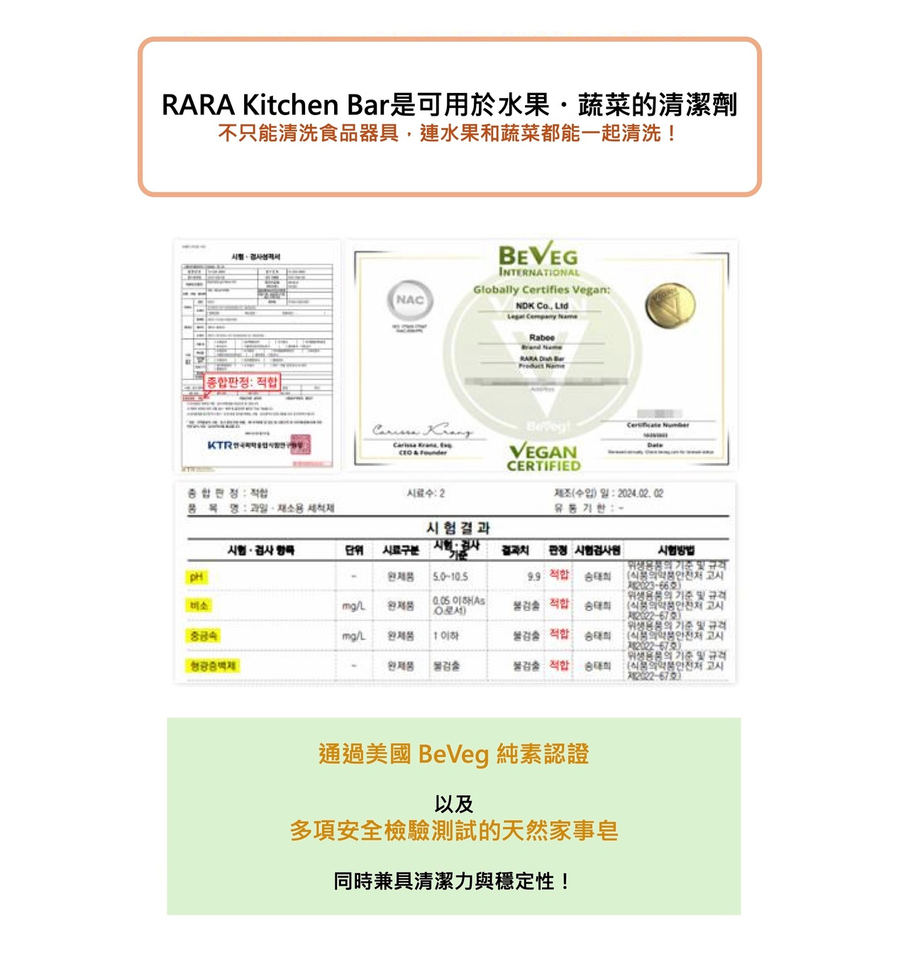 韓國原裝進口【Rabee 天然家事皂 RARA Kitchen Bar】可清洗餐具、安全清潔、可用於清洗蔬菜水果。