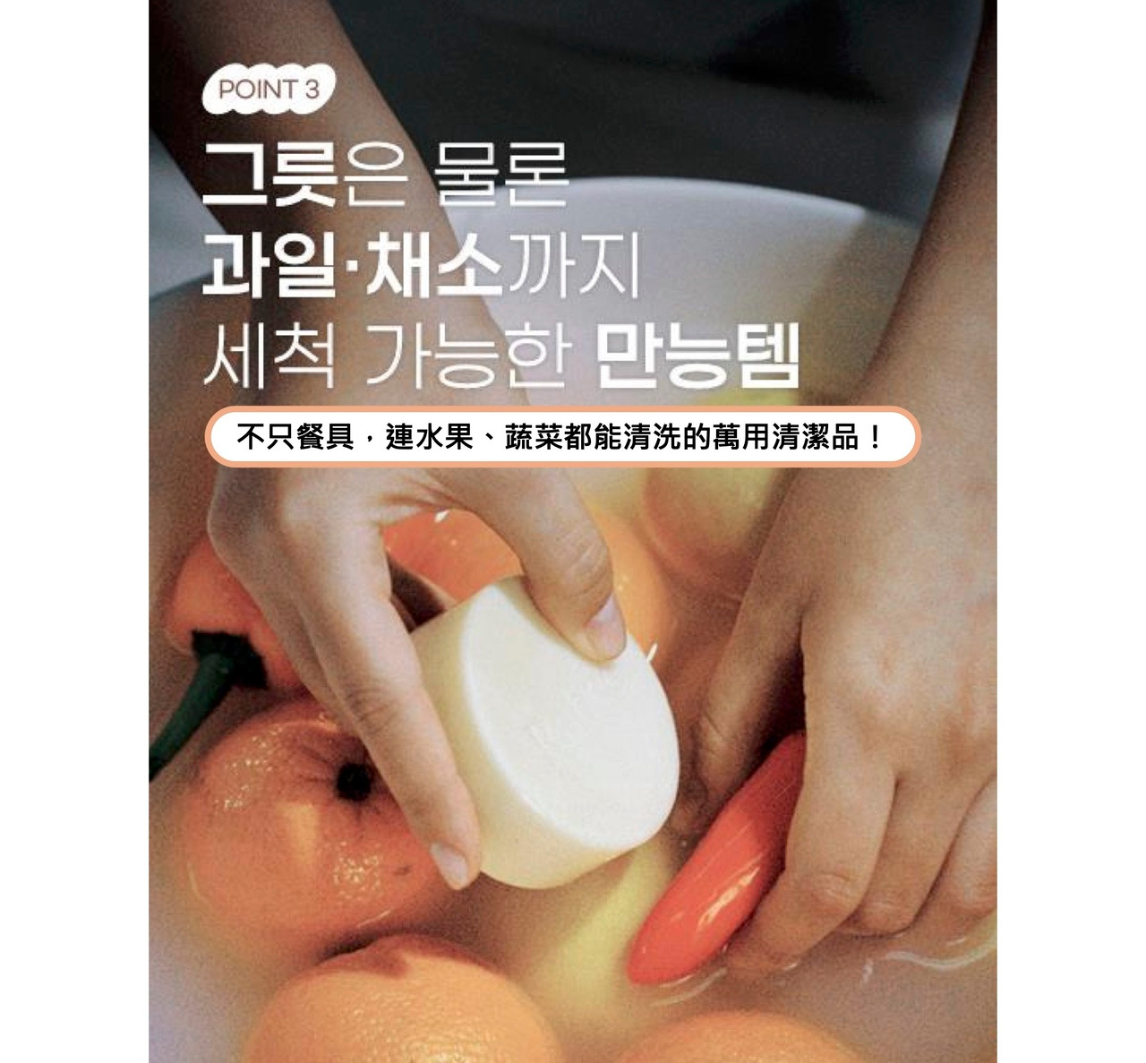 使用方式: 搓揉起泡後清潔碗盤或蔬果外皮,再以清水沖洗乾淨